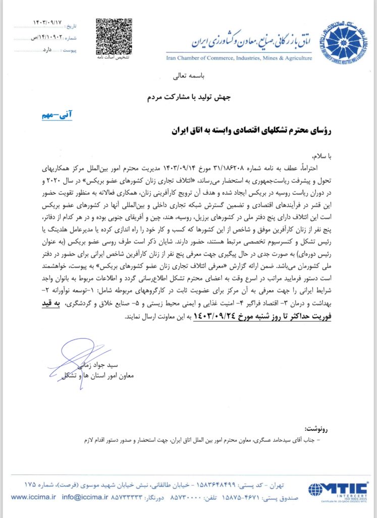 معرفی ائتلاف تجاری زنان عضو بریکس