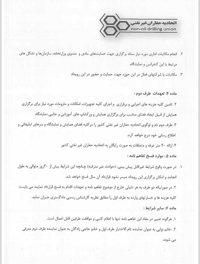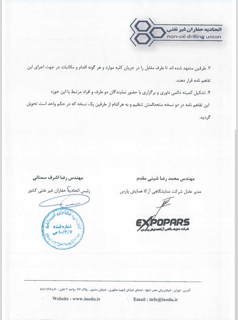 تفاهم نامه برگزاری کنفرانس همایش و نشست های تخصصی حفاری توسط اتحادیه حفاران غیرنفتی و شرکت آرکا همایش پارس