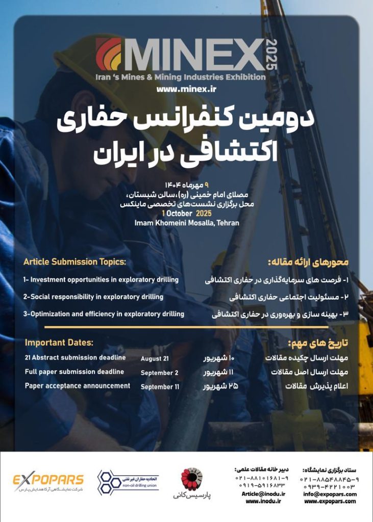 چهاردهمین نمایشگاه بینالمللی فرصتهای سرمایهگذاری در معدن و صنايع معدنی ایران (۱۰-۸ مهر) و دومین کنفرانس حفاری اکتشافی در ایران ( ۹ مهرماه )