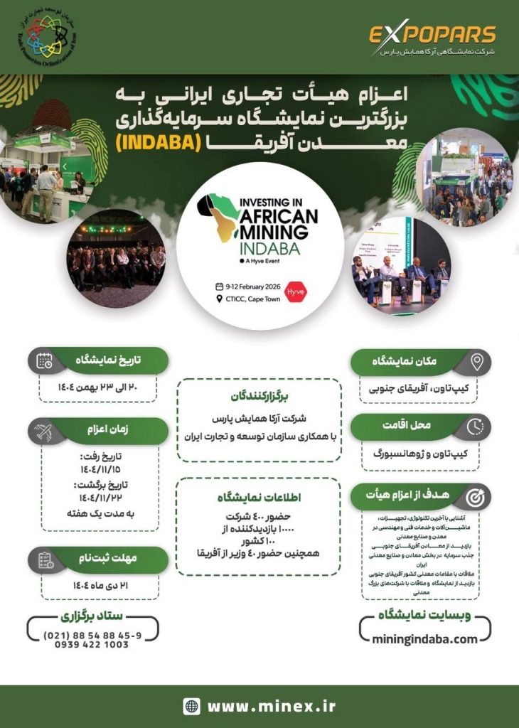 اعزام هیات تجاری ایرانی به بزرگ ترین نمایشگاه سرمایه گذاری معدن آفریقا (INDABA)