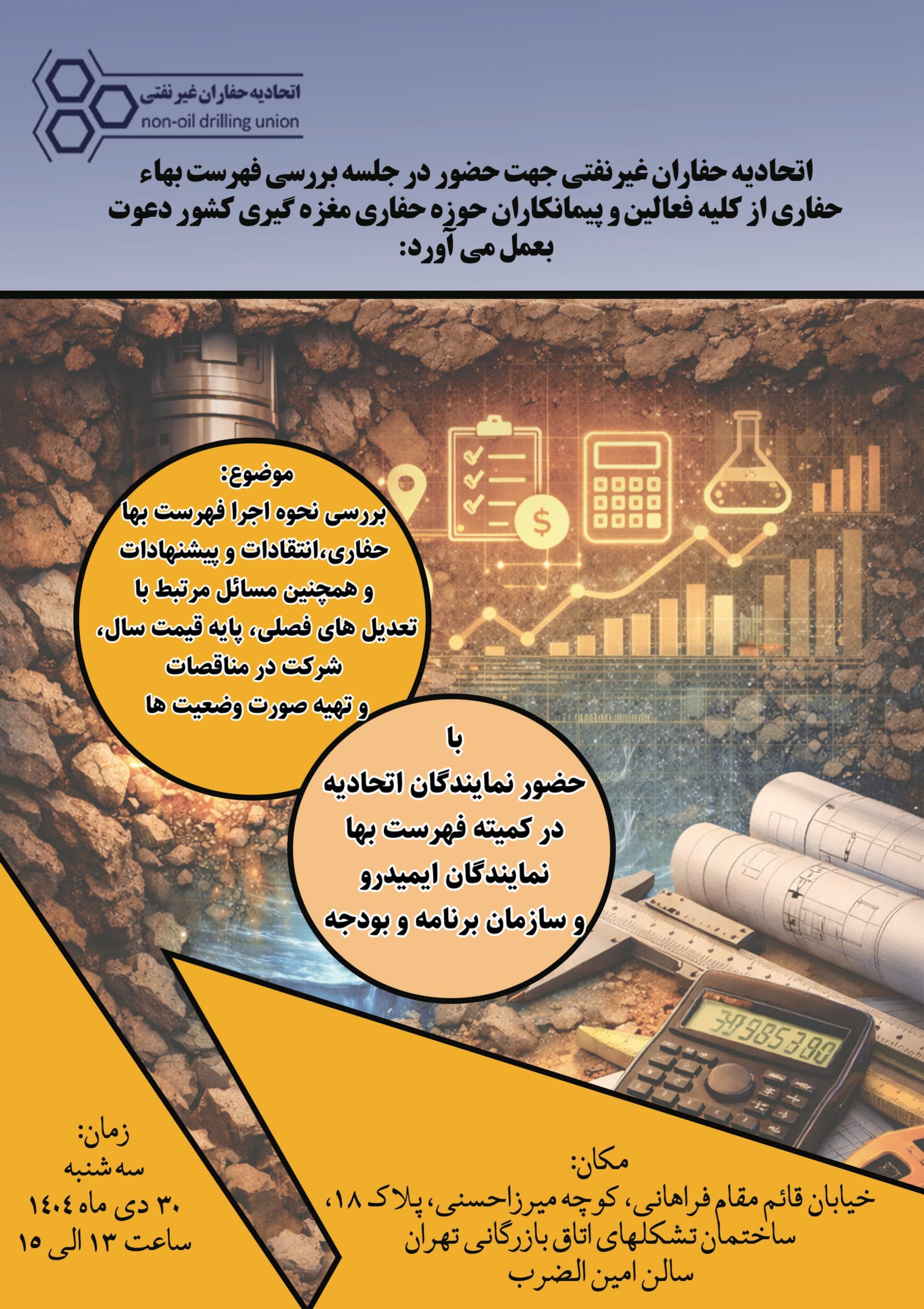اتحادیه حفاران غیرنفتی برگزار می کند: جلسه بررسی فهرست بها حفاری